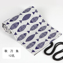 手工帆布笔帘122F242F362F482F大容量卷笔袋素描彩铅绘画文具 秋刀鱼 36孔