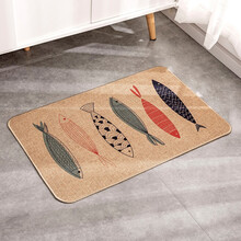翰宇軒 居家用亚麻印花地垫客厅玄关防滑垫卧室门垫厨房地垫浴室门口脚垫 【地垫】秋刀鱼 15天包退换(非此商品)