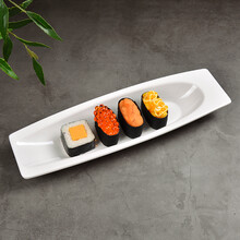 A5密胺仿瓷餐具白色寿司店盘子秋刀鱼盘碟日式塑料碟长方形创意个性长条盘碟破损包赔 A5白色 A372-13长方肉丸碟12.4英寸