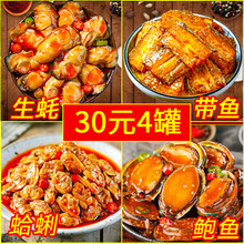 力宏平 麻辣小海鲜熟食即食罐装组合罐头扇贝蛤蜊鲍鱼花甲海兔网红下饭菜 鲍鱼+生蚝+蛤肉+带鱼【4罐】