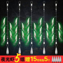 仿生翘嘴钓组鲫鱼白条串钩防缠绕远投虾皮带鱼串钩排鱼钩全套 升级款(5套装)仿生夜光虾串钩+15克铅坠 8号