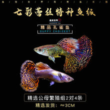 孔雀鱼纯种观赏鱼小型淡水好养热带鱼活体清道夫斑马金鱼小鱼鱼苗 七彩蕾丝繁殖组2对共4条【2-3cm