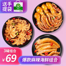 食邦人 麻辣小海鲜爆头八爪鱼带鱼罐头即食海鲜罐头麻辣龙虾尾蟹钳蒜蓉生蚝海鲜制品 八爪鱼+长腿八爪鱼+鱿鱼条