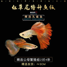 孔雀鱼纯种观赏鱼小型淡水好养热带鱼活体清道夫斑马金鱼小鱼鱼苗 红草尾繁殖组2对共4条【2-3cm】