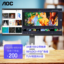 AOC 34英寸 WQHD带鱼屏 IPS广色域 75Hz HDR Mode 出厂校色 双向旋转升降 21:9电脑显示器 U34P2/BS