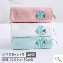 SoftKiss儿童幼儿园专用小毛巾柔软洗脸帕宝宝家用纯棉纱布竹纤维小孩全棉方巾A类 热带鱼3条装 32*32