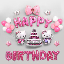 墨斗鱼 气球粉色猫2999 客厅走廊婴儿房儿童房女孩书房酒店大堂浪漫生日结婚布置装饰品用品