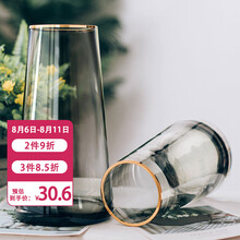 墨斗鱼 玻璃花瓶北欧风轻奢描金边花瓶摆件水培富贵竹玫瑰百合客厅桌面干花插花器0401