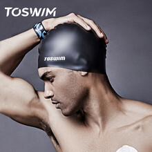TOSWIM拓胜泳帽男 硅胶游泳帽女 长发防水舒适成人儿童通用 墨鱼黑【标准版】