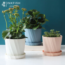 墨斗鱼 欧式简约创意花盆 混装中号3个装栀子花绿萝加厚款圆形垫深垫底托盘现代卧室室内简约螺旋花盆1589