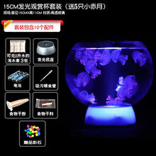 观赏活体宝宝海月赤月水母活物情人节桌宠礼物新奇小宠物海蜇 小赤月带中玻璃缸套餐5只