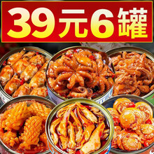 海进士 即食罐装香辣鸟贝海鲜熟食金沟贝爆头下饭菜香辣大鱿鱼八爪鱼罐头 豪横6罐