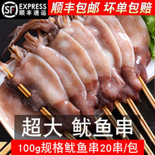 发顺丰新鲜生整只铁板鱿鱼烧烤鱿鱼串铁板鱿鱼串鱿鱼片海鲜批. 铁板鱿鱼100串(批发) 约50g/串