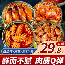海领冠麻辣鱿鱼花罐头香辣海兔花蛤蜊罐装鱿鱼海鲜熟食扇贝肉即食带鱼黄花鱼网红聚会风味小零食下饭菜 【4罐装】鱿鱼花+海兔+蛤蜊+扇贝