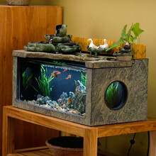 匠心坊中式办公室桌面流水鱼缸喷泉家居水景观摆件客厅装饰品 0162莲莲如意(中,带雾化,侧面开窗)