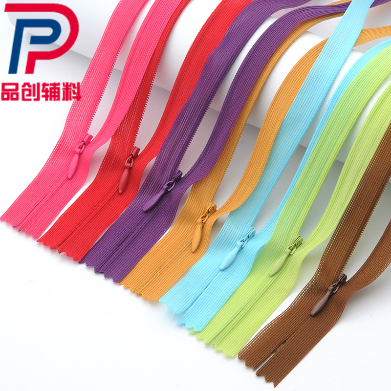 产品名称:彩色自锁隐形拉链 品牌:品创辅料
