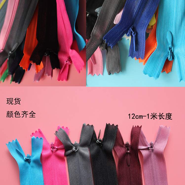 蕾丝隐形拉链尼龙布边现货 真丝抱枕靠枕拉链可定制多种颜色可选