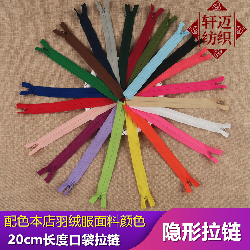 羽绒服口袋短拉链 20cm长度 配色可剪短侧缝拉链后背拉链隐形拉链