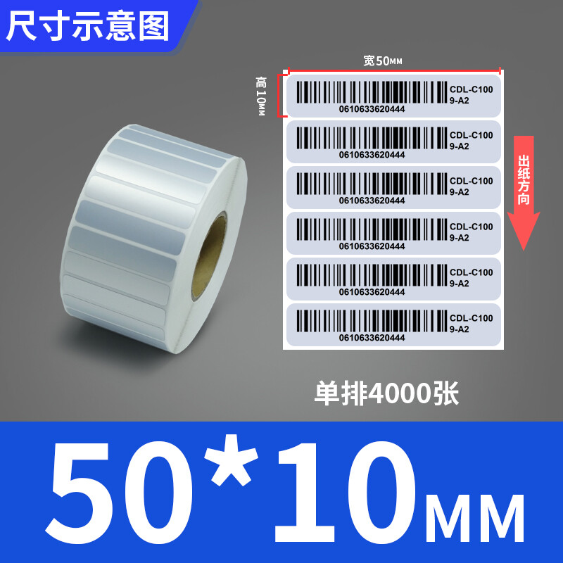 HA.BC艾利哑银标签纸不干胶50-55宽条型码产品规格管理卷装贴标打印纸家电金属电器电机高温撕不破