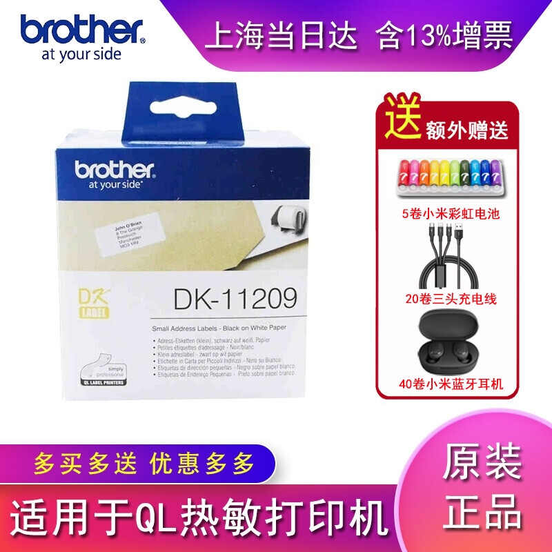 兄弟brother原装热敏不干胶标签纸QL-1050/700/800/720NW/1100/1110 DK11209