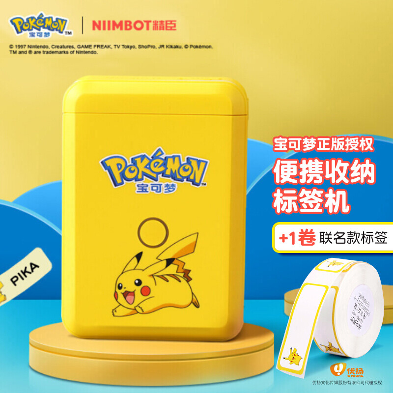 精臣 D110家用标签打印机宝可梦联名款皮卡丘 智能标签机年会礼品姓名贴纸便签收纳手持蓝牙热敏便携式