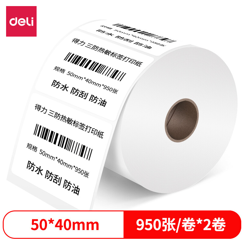 得力(deli)50*40mm三防热敏标签打印纸 电子面单标签不干胶打印纸电子称条码纸950张*2卷 三防升级款12011