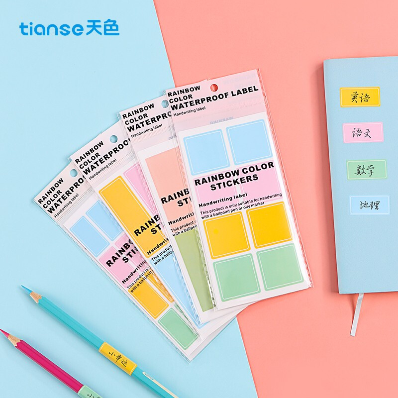 天色 马卡龙色标签贴纸姓名贴 不干胶标签贴纸自粘性标贴纸