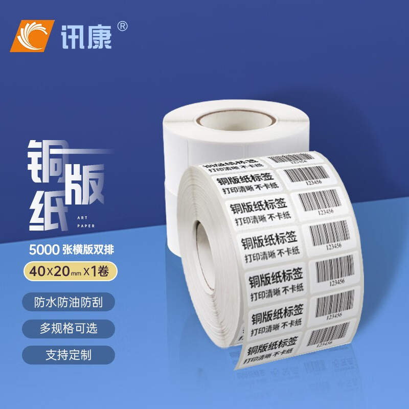 讯康铜版纸标签纸40*20mm*5000张*1卷 不干胶打印纸 热敏标签纸 条码纸 哑面空白纸