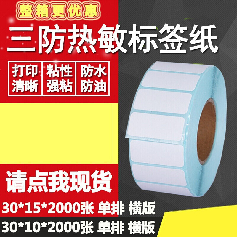 齐尚三防热敏不干胶30*10 15单排双排条码标签纸打印贴纸 30*10*2000张