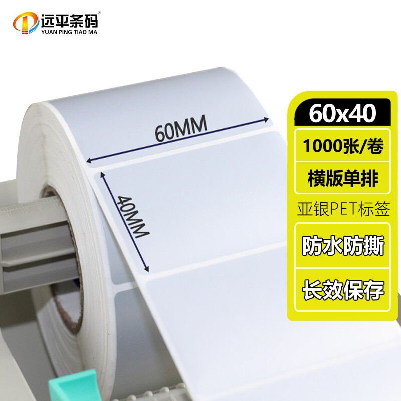 远平条码 亚银PET不干胶条码标签纸 横板60mm*40mm*1000张