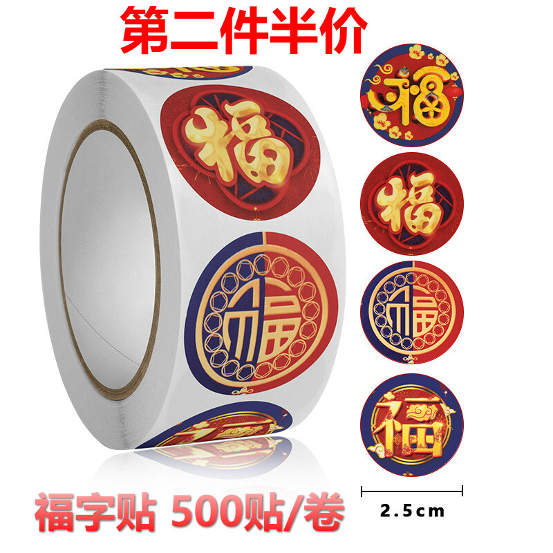 500贴一卷新年快乐元旦新春祝福封口贴不干胶标签礼品礼物贴纸E 福字贴