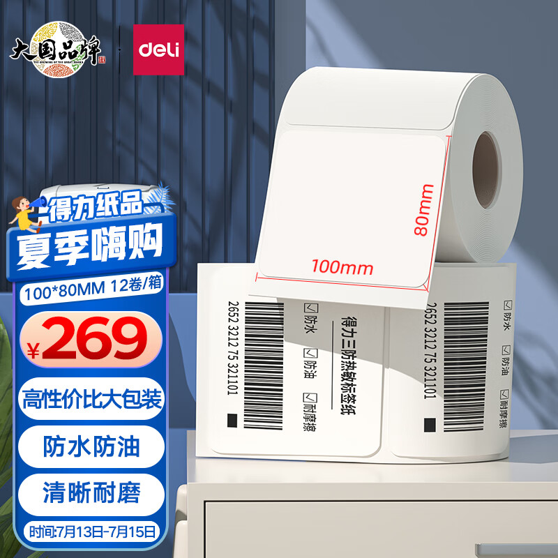 得力(deli)白令海100*80mm三防热敏标签打印纸 电子面单不干胶打印纸电子秤条码纸