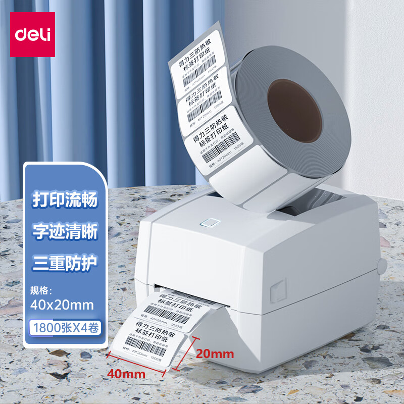 得力(deli)40*20mm三防热敏标签打印纸 电子面单标签不干胶打印纸电子称条码纸