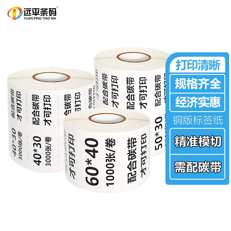 远平条码 铜版纸标签 不干胶条码打印纸 支持定制印刷 40mm*30mm*3000张