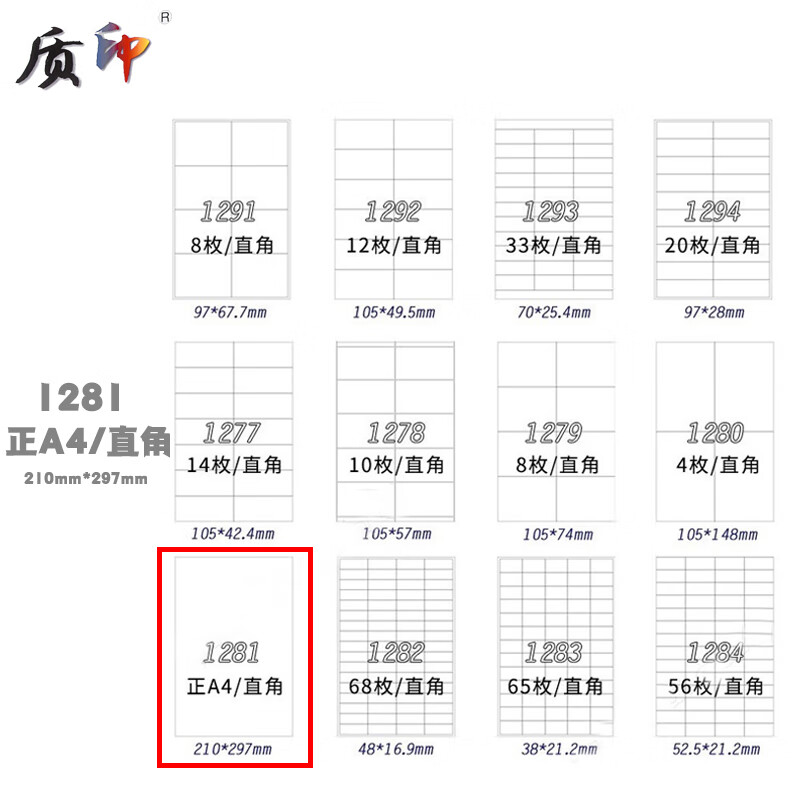 质印 A4/100张不干胶分切标签贴 内分背胶纸 黏贴自粘贴 直角圆角 白色内切割 哑麻面喷墨激光打印纸