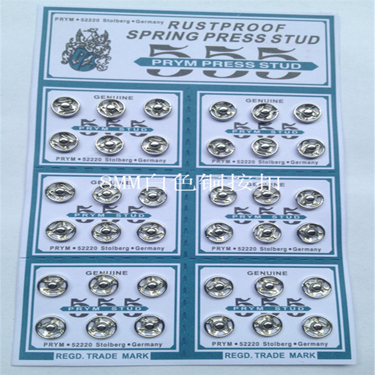 产品特点:铜材质,H62铜,H68铜,母扣采用18丝铜料,公扣采用20丝铜料;形状呈圆形、四眼手缝按扣、又称暗扣,啪钮,快钮,揿钮。表面有印花,电镀主打无叻白,黑色,金色,枪黑,青铜,环保可过检!