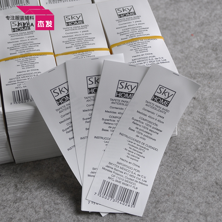 4、其它材质:无纺布洗水唛、聚酯带、珠光带、混纺布、pvc带、厚纸扑、软泰维克、牛油纸、绒布、冲皮布等。