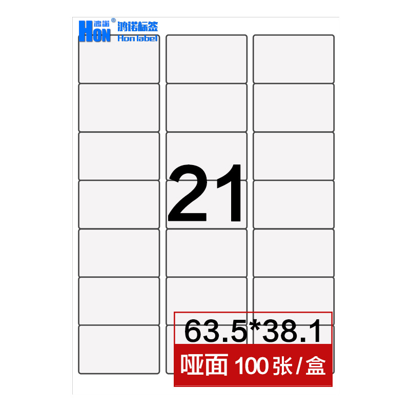 鸿诺A4不干胶标签纸空白货运物流邮寄条码标签21格打印纸送软件