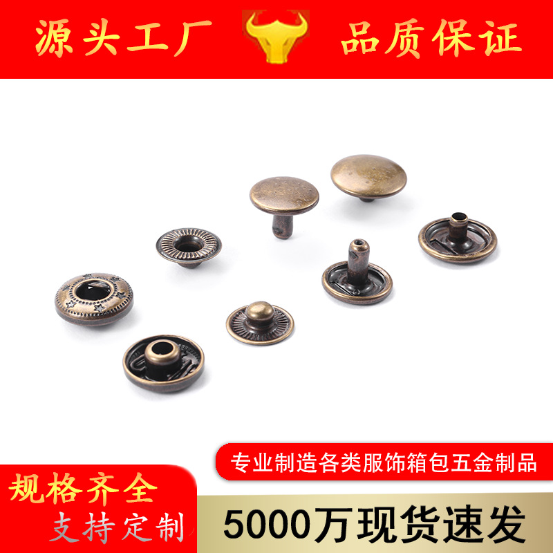 厂家直供 831金属四合扣圆形古铜色金属四合扣 铜质铁质服装纽扣