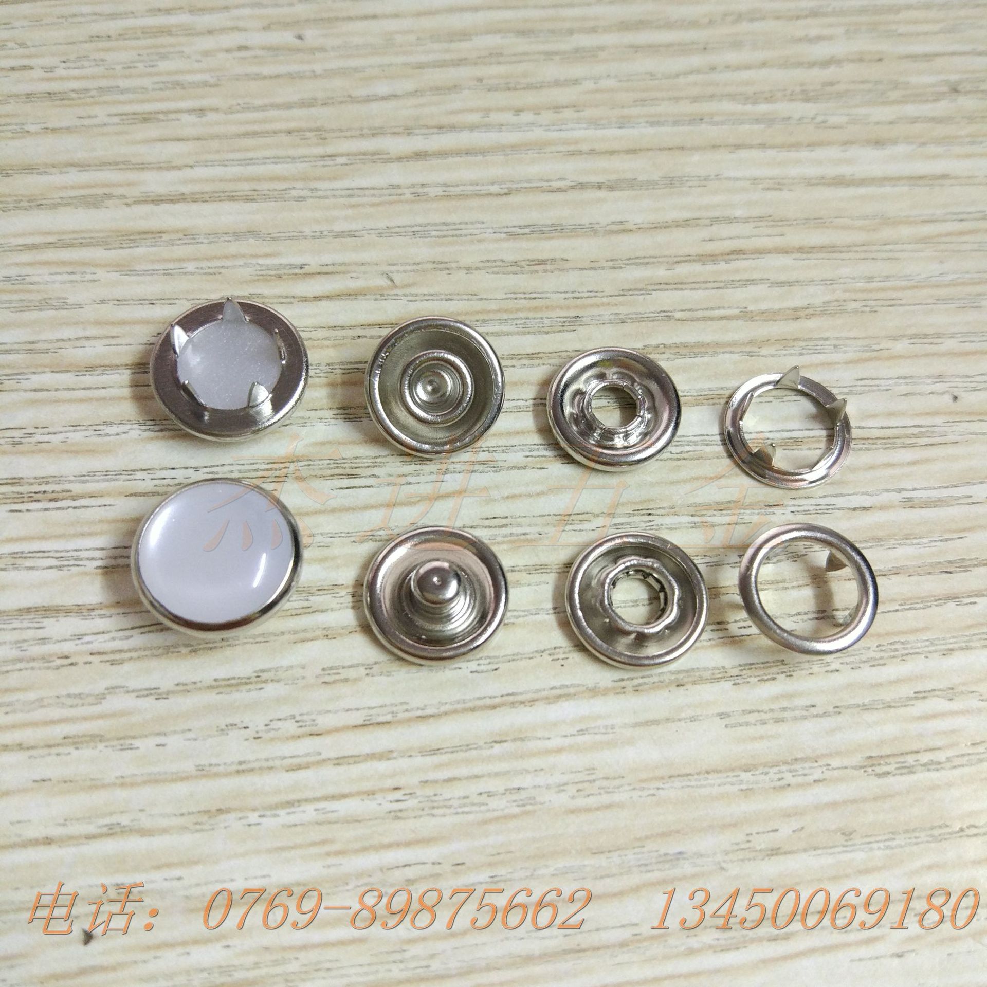 五爪扣也叫四件扣,亦有称圈扣,意指五个爪的扣子,五爪扣可分为:空心五爪扣、包面五爪扣、珠光五爪扣、漆面五爪扣。主要适用于毛制薄衣料、伸缩性衣料、非伸缩性衣料,如:婴幼儿针织内衣、爬服、围嘴、西式睡衣、童装等。规格有:111#(7.5mm)、222#(9.5mm)、333#(11mm)、444#(13mm)、555#(15mm)、777#(17mm)、999#(21mm)等。欢迎前来选购!