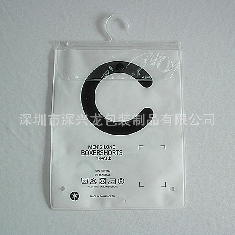 pvc衣架挂钩袋 凹底挂钩透明包装袋 白色挂钩塑料袋防水pvc纽扣袋