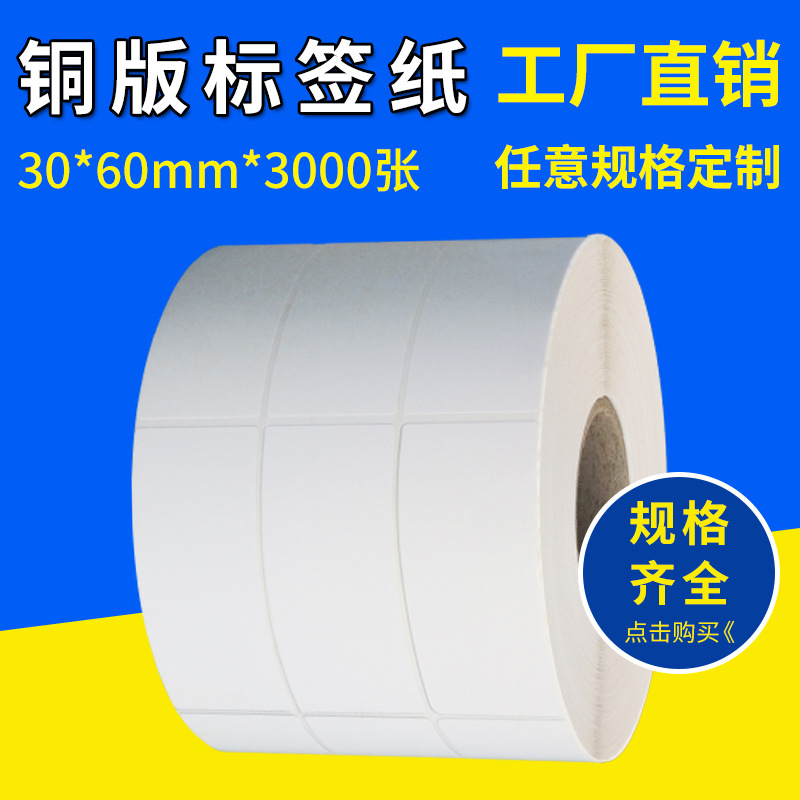 不干胶铜版纸 条码打印纸 空白标签30*60*3000三排打印贴纸
