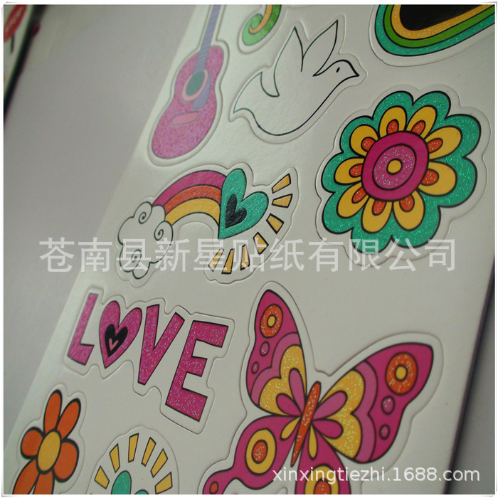 产品特点:贴纸通过特殊工艺,使图案更形象,更吸引人,越来越受小孩的喜欢。图案立体、新颖,材料环保,对人体无害,可随处贴在自己喜欢的物品上。