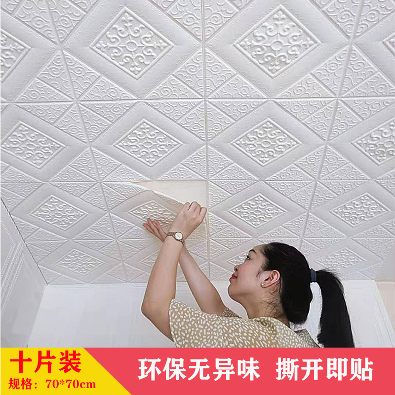 网红天花板吊顶装饰贴自粘墙纸白色装饰壁纸客厅温馨自贴防水3d