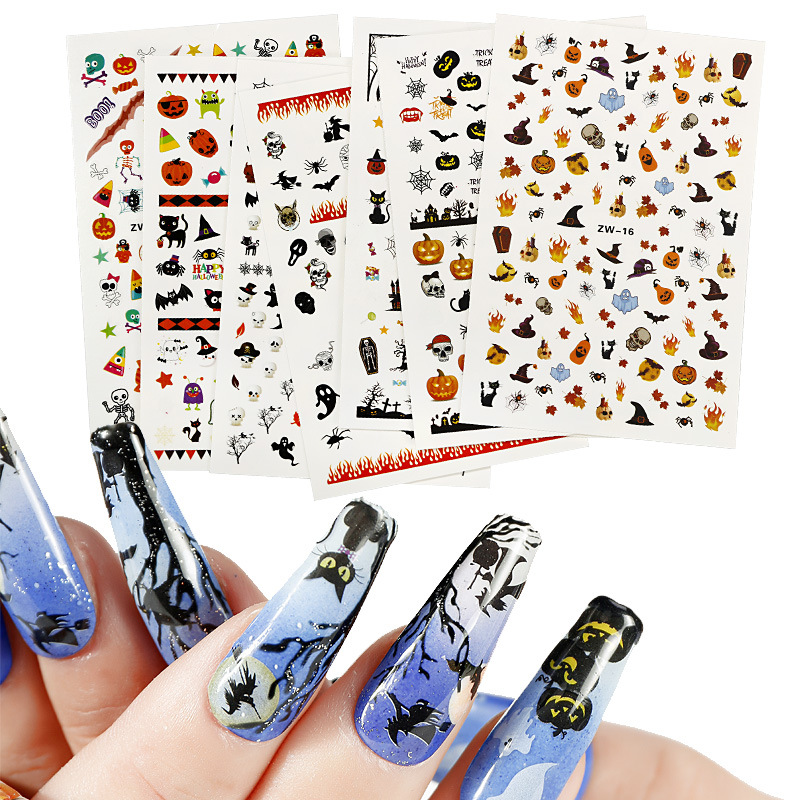 品名:美甲万圣节贴纸 转印万圣节南瓜骷髅枫叶3D带背胶水指甲贴纸