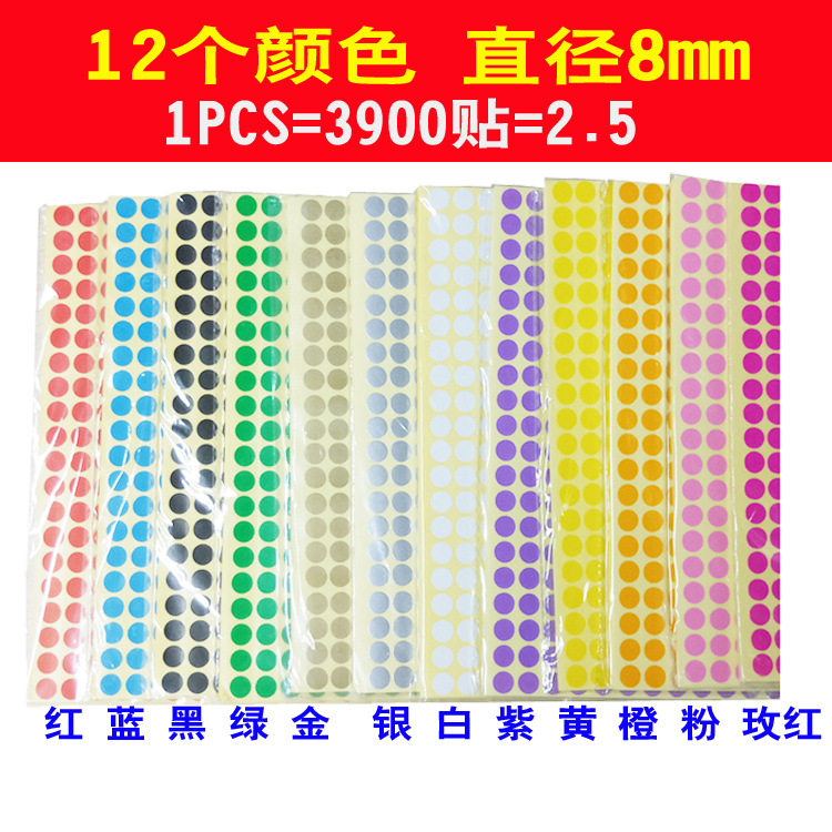 圆形颜色标签 彩色圆点圆形不干胶标签颜色贴纸 8mm圆点色标定制