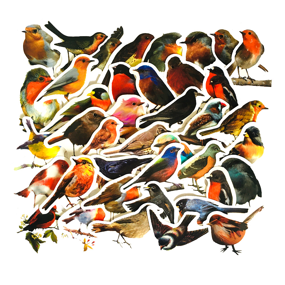 40张彩色知更鸟小说手账不干胶贴纸笔记本行李箱地摊热卖头盔贴画