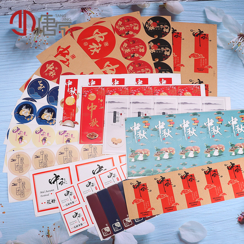 月饼装饰贴纸 中秋不干胶 烫金 花好月圆/中秋团圆 蛋黄酥封口贴