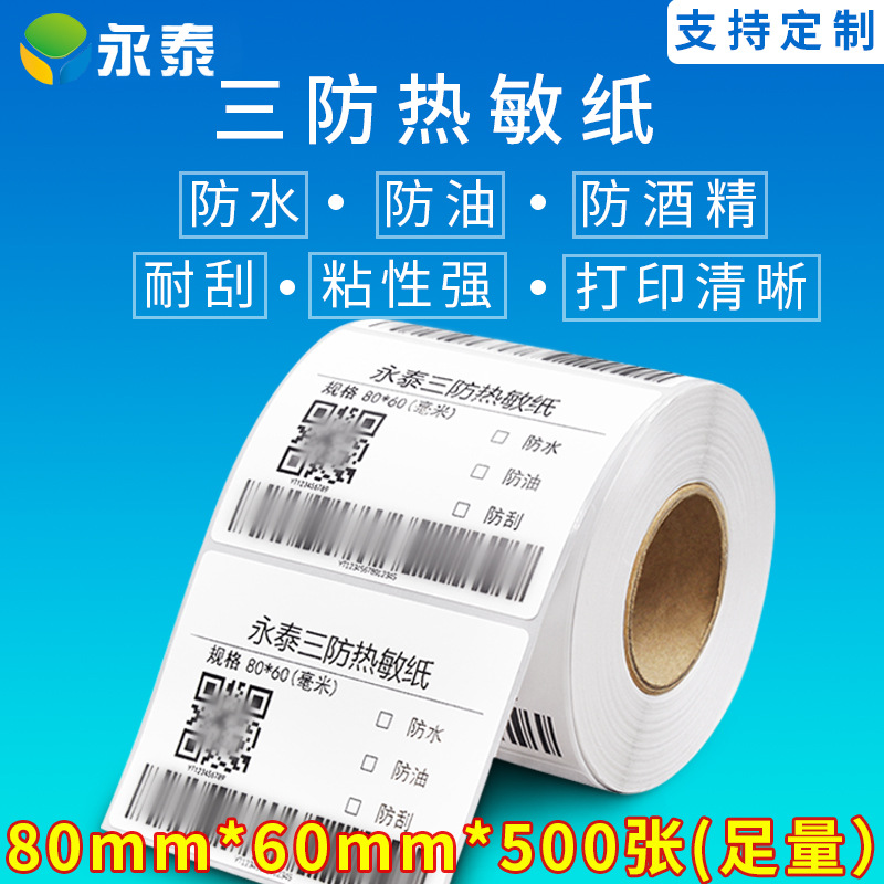永泰三防热敏纸80*60毫米*500张条码标签贴纸打印商品不干胶纸