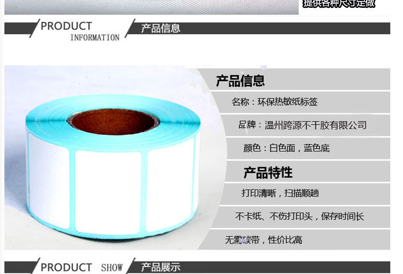 承诺所有规格均足张数!本店可订购各种规格热敏纸、铜版纸、PVC、PET、牛皮纸、感热纸、镀银纸、合成纸。